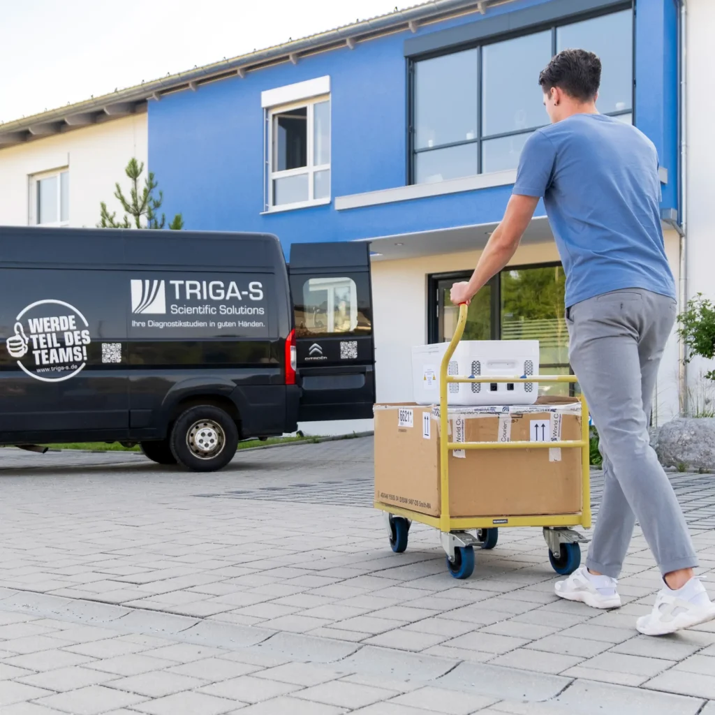 Eine gut geplante Logistik hält Ihre Studie verlässlich auf Kurs. Von der Assemblierung validierter Abnahmekits über temperaturkontrollierte Lagerung bis zum weltweiten Versand organisiert TRIGA-S Ihre Studienlogistik so, dass Vorgaben eingehalten, Zollbestimmungen erfüllt und jede Sendung lückenlos nachverfolgbar ist – auch bei Gefahrguttransporten.